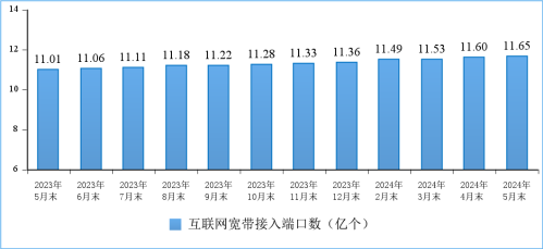 千兆光纖寬帶網(wǎng)絡建設持續(xù)推進。截至5月末,全國互聯(lián)網(wǎng)寬帶接入端口數(shù)量達11.65億個,比上年末凈增2943萬個。其中,光纖接入(FTTH/O)端口達到11.26億個,比上年末凈增3123萬個,占互聯(lián)網(wǎng)寬帶接入端口的96.6%。截至5月末,具備千兆網(wǎng)絡服務能力的10G PON端口數(shù)達2541萬個,比上年末凈增238.8萬個。