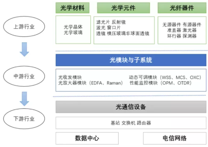 激光焊接在光通信行業(yè)的應(yīng)用,要了解激光焊接在光通信行業(yè)的應(yīng)用,先看一張圖,直觀的了解一下光通信行業(yè)的一個(gè)上下游產(chǎn)業(yè)鏈情況。