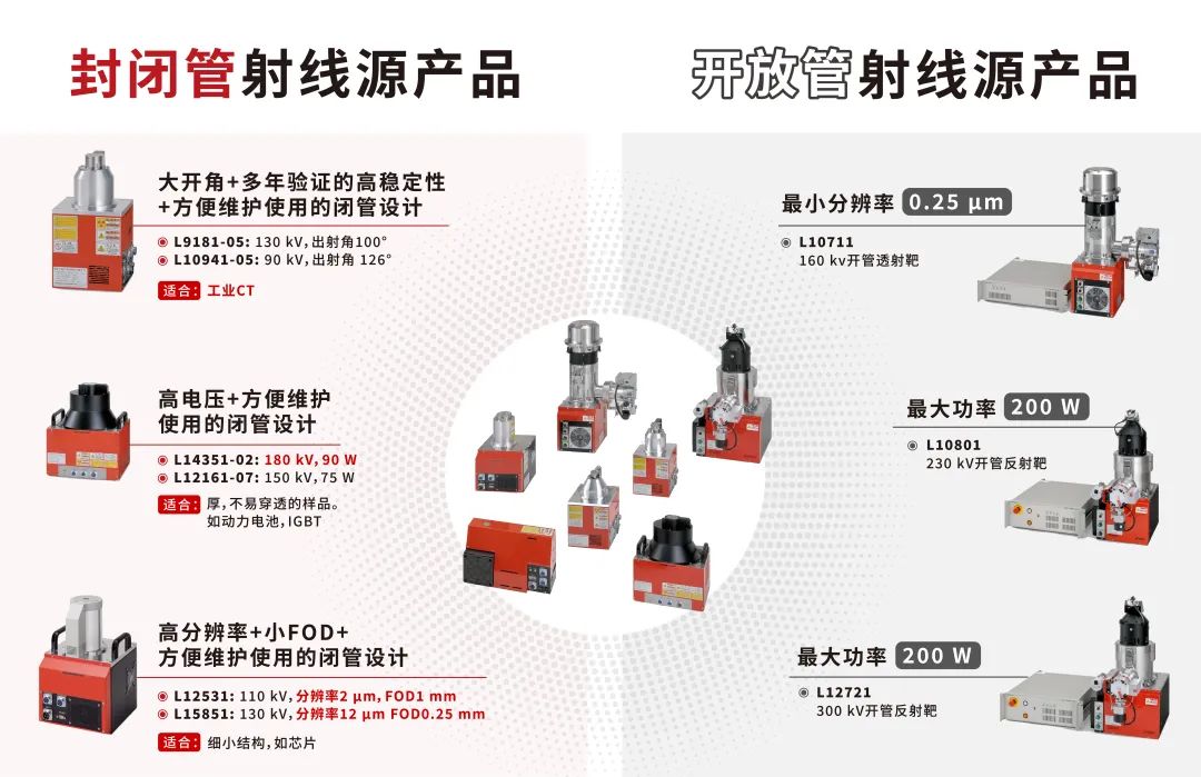 不僅如此,L12161-07在問世十多年后,仍然保持著強(qiáng)大的生命力。隨著鋰離子電池市場的蓬勃發(fā)展,這款MFX產(chǎn)品也開始被用于鋰離子電池的檢測。150kV的管電壓使得L12161-07在鋰離子電池檢測領(lǐng)域表現(xiàn)出色,至今仍受到許多客戶的青睞。后續(xù)濱松繼續(xù)推出更高性能的MFX產(chǎn)品。L14351封閉型MFX和L12721開放型MFX分別實(shí)現(xiàn)了180 kV和300 kV的最大管電壓,為更大尺寸的檢測對(duì)象提供了可能。
