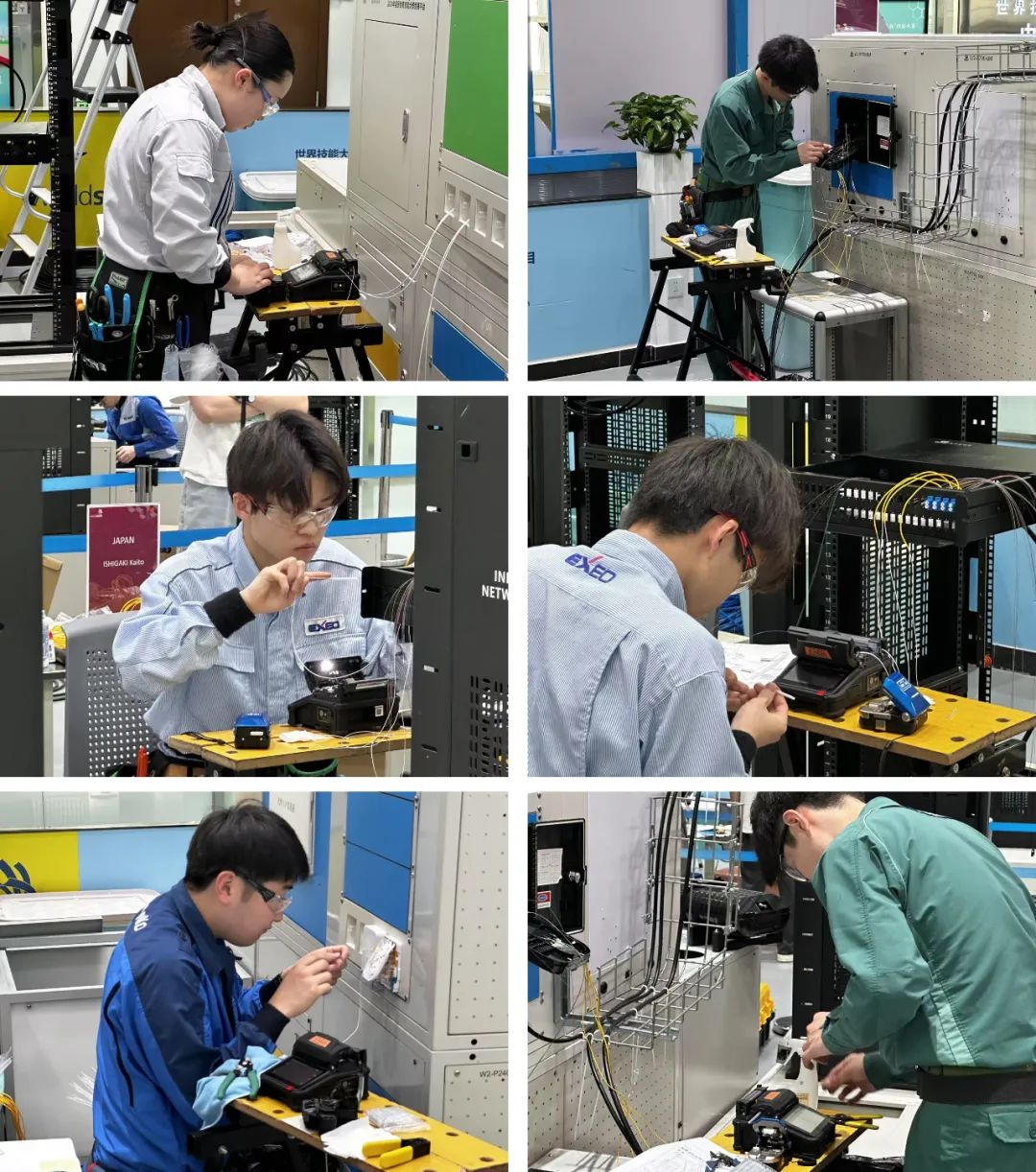 開幕式后舉行了信息網(wǎng)絡(luò)布線項(xiàng)目國際交流賽。本次國際交流賽對(duì)標(biāo)世界技能大賽競賽標(biāo)準(zhǔn),共設(shè)置了4個(gè)比賽模塊,選手需根據(jù)行業(yè)標(biāo)準(zhǔn)(如ISO/IEC、TIA/EIA)完成復(fù)雜的商業(yè)建筑網(wǎng)絡(luò)布線系統(tǒng)設(shè)計(jì)、安裝與測試,其中包括光纖、銅纜等纜線。且需要在預(yù)設(shè)故障的網(wǎng)絡(luò)系統(tǒng)中,快速定位并修復(fù)銅纜和光纖鏈路中的問題。參賽選手使用住友電工提供的比賽設(shè)備,開展了激烈角逐。