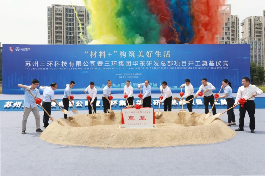 ICC訊 5月16日,蘇州三環(huán)科技有限公司暨三環(huán)集團(tuán)華東研發(fā)總部項(xiàng)目開工奠基儀式在吳中區(qū)舉行。區(qū)委副書記、區(qū)長顧曉東,市政府辦副主任黃志強(qiáng),副區(qū)長、吳中高新區(qū)黨工委副書記、管委會(huì)主任張偉,三環(huán)集團(tuán)創(chuàng)始人張萬鎮(zhèn),三環(huán)集團(tuán)副總裁、蘇州三環(huán)董事長邱基華,三環(huán)集團(tuán)副總裁劉德信、鄭可城以及區(qū)級(jí)機(jī)關(guān)相關(guān)部門、吳中高新區(qū)、木瀆鎮(zhèn)有關(guān)負(fù)責(zé)人等參加活動(dòng)。