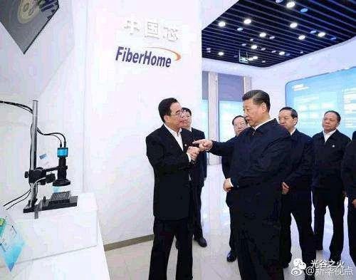 2018年4月26日習(xí)總書記視察光迅科技光芯片展區(qū)