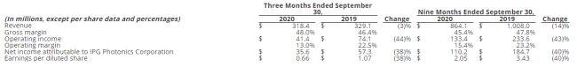 ICC訊(編譯:Nina)近日,IPG Photonics公司公布了其截至2020年9月30日的第三季度財務業(yè)績。