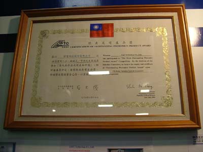 今年“臺北光電周”系列展覽與“臺灣平面顯示器展”共有超過500家國內(nèi)外廠商來共享盛舉,攤位數(shù)高達(dá)1300多個,再創(chuàng)歷年新高。而此次盛會參觀人數(shù)將近三萬。此外,展覽活動還搭配第九屆“十大杰出光電產(chǎn)品獎”選拔與頒獎等系列活動,其中光無源器件廠商偉電科技股份有限公司的“新型實(shí)用二合一機(jī)械式/可調(diào)式光衰減器”榮獲杰出光電產(chǎn)品獎(如圖)。