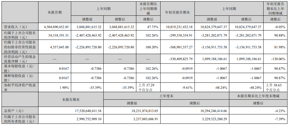 ICC訊 10月31日,歐菲光集團(tuán)股份有限公司(簡(jiǎn)稱“歐菲光”或“公司”,002456)發(fā)布2023 年第三季度報(bào)告,2023年第三季度實(shí)現(xiàn)營(yíng)業(yè)收入45.04億元,同比增長(zhǎng)47.75%;歸屬于上市公司股東的凈利潤(rùn)5431.82萬(wàn)元,同比增長(zhǎng)102.26%,上年同期的虧損24.07億元;凈利率1.2%。2023年前三季實(shí)現(xiàn)營(yíng)業(yè)收入108.19億元,同比下滑0.05%;凈虧2.99億元,同比增長(zhǎng)90.88%。