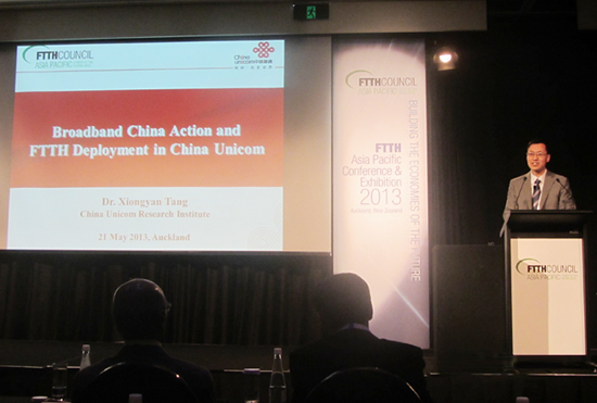 會(huì)上,來(lái)自中國(guó)聯(lián)通設(shè)計(jì)院的唐雄燕博士介紹了寬帶中國(guó)和FTTH部署的進(jìn)展,指出寬帶是經(jīng)濟(jì)發(fā)展的重要推動(dòng)引擎,寬帶中國(guó)策略可能很快發(fā)布;中國(guó)的FTTH建設(shè)目前正處于快速發(fā)展階段。