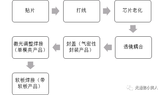 圖1 光模塊生產(chǎn)工藝的幾個關鍵工序