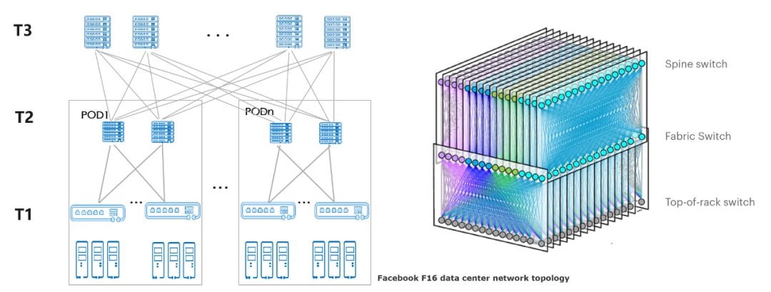 圖1:右側(cè)引用自 https://techblog.comsoc.org/2019/03/18/facebooks-f16-achieves-400g-effective-intra-dc-speeds-using-100ge-fabric-switches-and-100g-optics-other-hyperscalers/