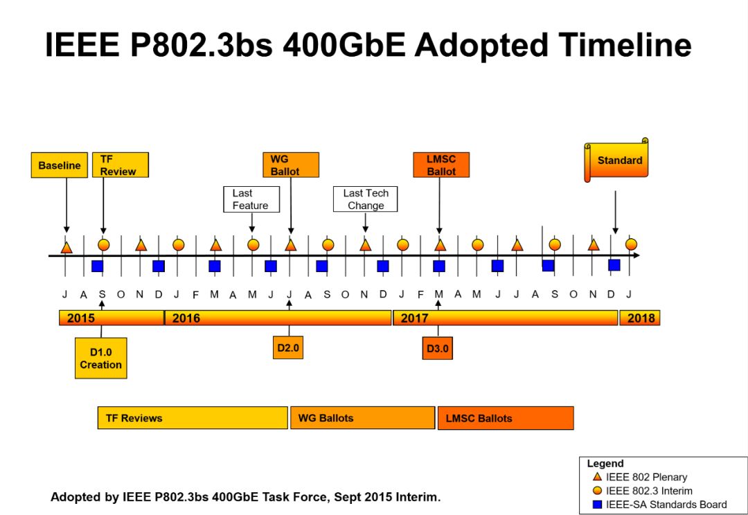 圖3:IEEE 802.3bs 400GE 標(biāo)準(zhǔn)關(guān)鍵里程碑,引自http://www.ieee802.org/3/bs/timeline_3bs_0915.pdf