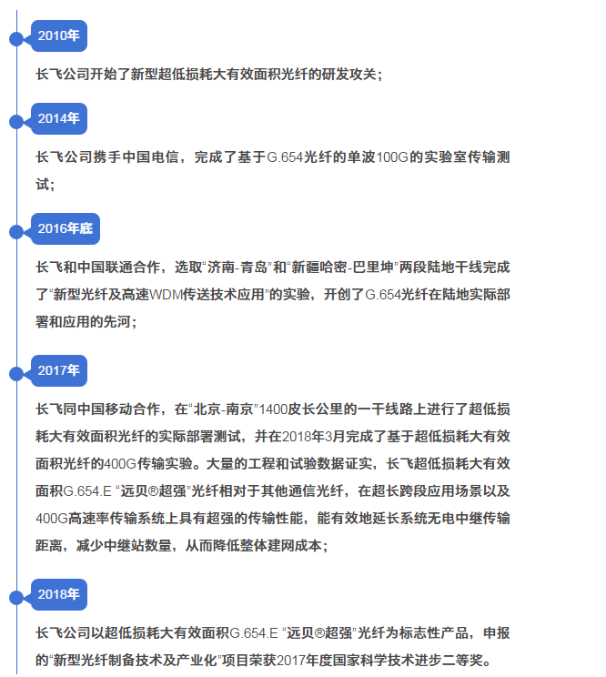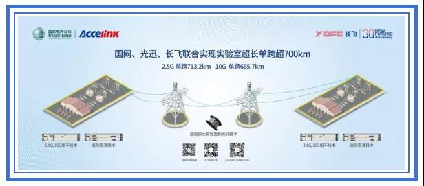 Iccsz訊 近日,長飛光纖光纜股份有限公司(以下簡稱“長飛公司”,股票代碼:06869.HK)、國家電網(wǎng)公司信息通信分公司(以下簡稱“國網(wǎng)信通”)與武漢光迅科技股份有限公司(以下簡稱“光迅科技”,股票代碼:002281.SZ)共同宣布:采用長飛公司超低損耗大有效面積 G.654.E“遠貝®超強”光纖和光迅科技E-ULH“增強型超長單跨距無中繼光路子系統(tǒng)”的三方合作項目,成功實現(xiàn)了10G系統(tǒng)665.7km和2.5G系統(tǒng)713.2km的單跨距無中繼實驗室傳輸測試,分別刷新了原單跨距2.5G和10G系統(tǒng)無中繼光傳輸的世界紀錄。