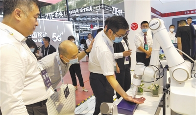 圖為參觀者在感受5G科技帶來的魅力??萍既請?bào)記者 周維海攝