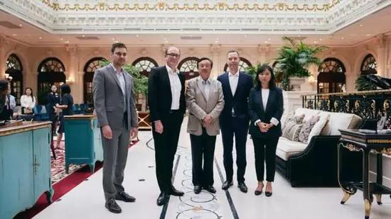 (任正非與兩家德媒的總編輯(左二、右二))