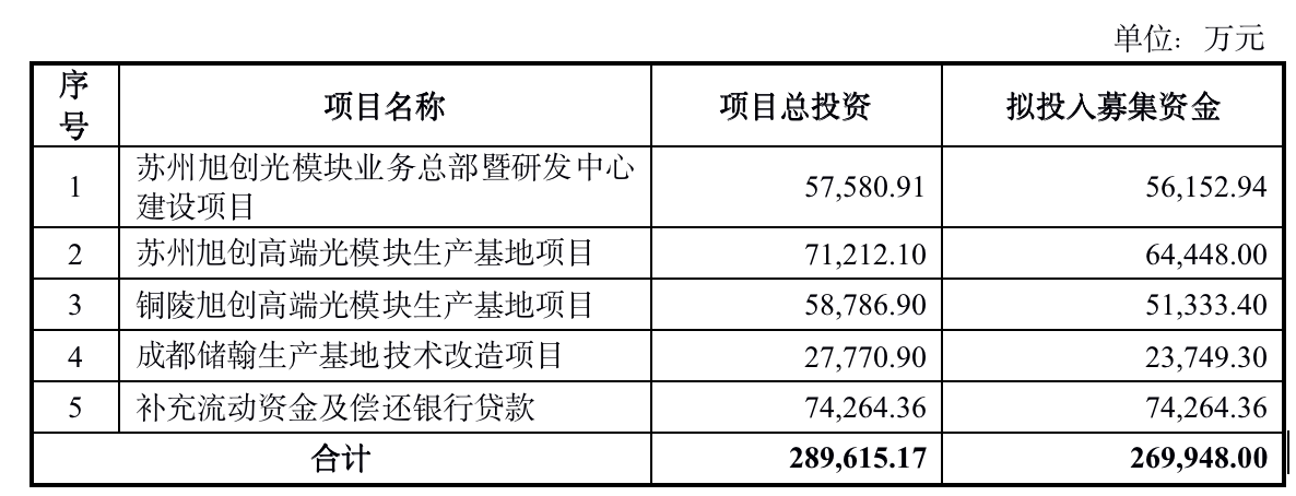 近日,中際旭創(chuàng)確定定向增發(fā)募集資金總額約為人民幣26.99億元,將用于蘇州旭創(chuàng)光模塊業(yè)務(wù)總部暨研發(fā)中心建設(shè)項(xiàng)目、蘇州旭創(chuàng)高端光模塊生產(chǎn)基地項(xiàng)目、銅陵旭創(chuàng)高端光模塊生產(chǎn)基地項(xiàng)目、成都儲(chǔ)翰生產(chǎn)基地技術(shù)改造項(xiàng)目并補(bǔ)充流動(dòng)資金及償還銀行貸款。