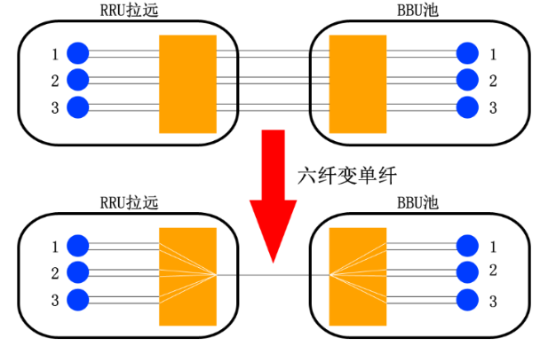 可以看到,該方案可以大量減少BBU-RRU之間的裸纖消耗,是解決4G前傳輸光纜不足時(shí),縮短建設(shè)工期,簡(jiǎn)化光纜規(guī)劃的最佳方案。