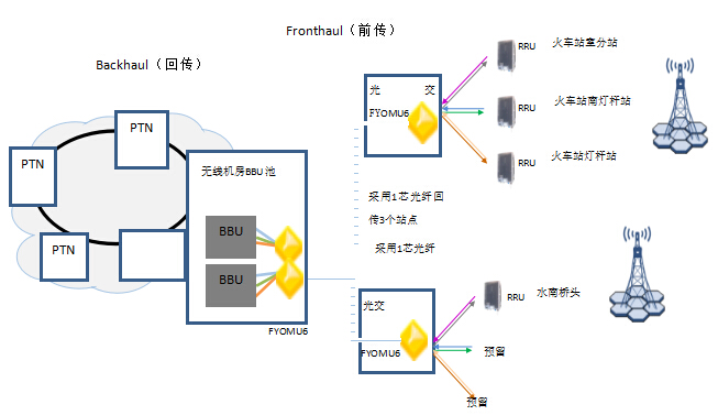 某市BBU集中部署試點(diǎn),使用無(wú)源波分技術(shù),起到節(jié)省光纖的效果