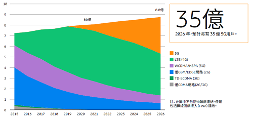 隨著網(wǎng)路連結(jié)成為疫情后經(jīng)濟(jì)復(fù)蘇的關(guān)鍵要素,且影響日益重大,預(yù)計(jì)在未來(lái)幾年,5G商用網(wǎng)路的動(dòng)能可望持續(xù)發(fā)展。2026年,東北亞地區(qū)將擁有全球最多5G用戶數(shù),估計(jì)高達(dá)14億;而北美和海合會(huì)成員國(guó)預(yù)計(jì)成為5G用戶滲透率最高的地區(qū),分別占據(jù)該地區(qū)行動(dòng)用戶總數(shù)的84%和73% 。