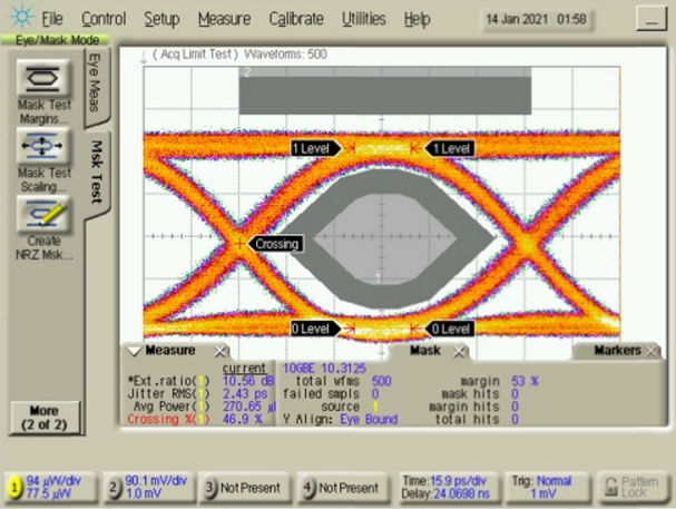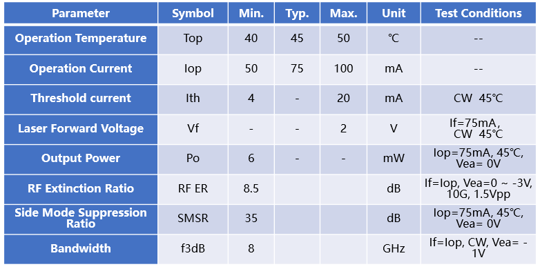 10G 1550nm/DWDM EML激光器,通過客戶端的眼圖測試及傳纖測試評估,可滿足傳輸網(wǎng)40/80km傳輸要求。