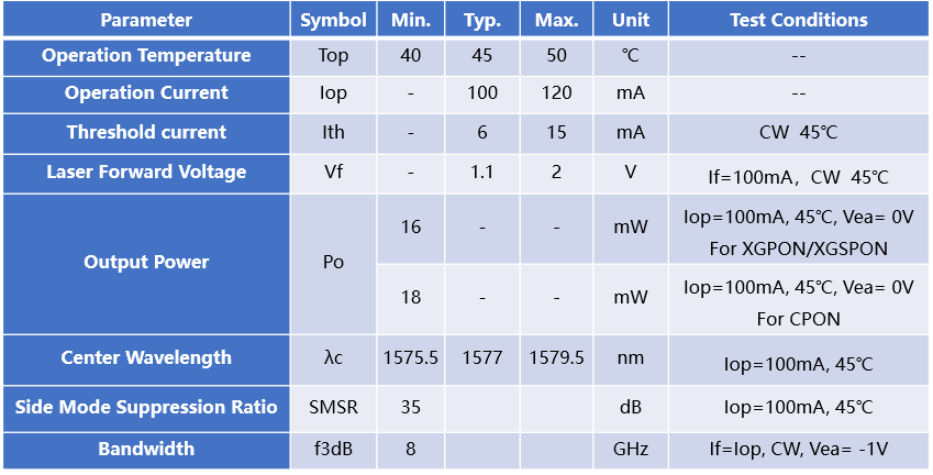 10G 1577nm EML激光器,應(yīng)用于有線接入網(wǎng)10G PON OLT端。