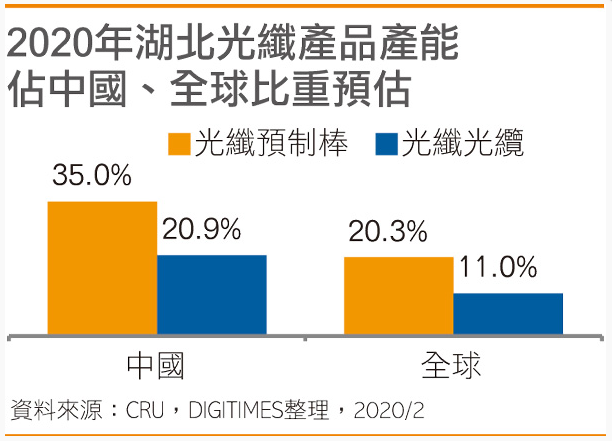 2020年湖北光纖產(chǎn)品產(chǎn)能占中國(guó)、全球比重預(yù)估
