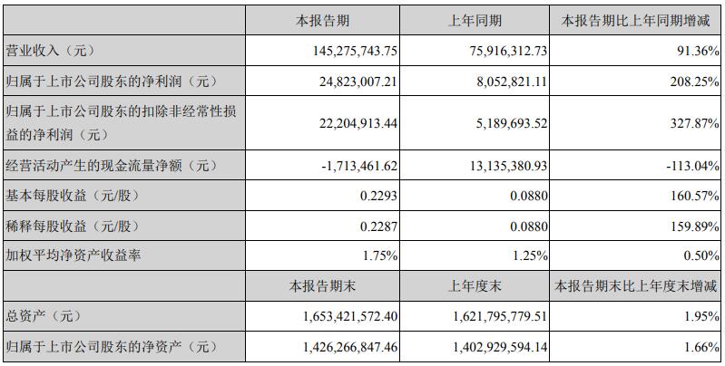 ICC訊(編輯:Debi)4月26日晚間,珠海光庫科技股份有限公司(簡稱“光庫科技”)發(fā)布2021年第一季度報告。2021年一季度,光庫科技實現(xiàn)營業(yè)收入1.45億元,同比增長91.3%;歸屬于上市公司股東的凈利潤2482.3萬元,同比增長208.25%;其中,計入當(dāng)期損益的政府補助(與企業(yè)業(yè)務(wù)密切相關(guān),按照國家統(tǒng)一標(biāo)準(zhǔn)定額或定量享受的政府補助除外)289.79萬元。