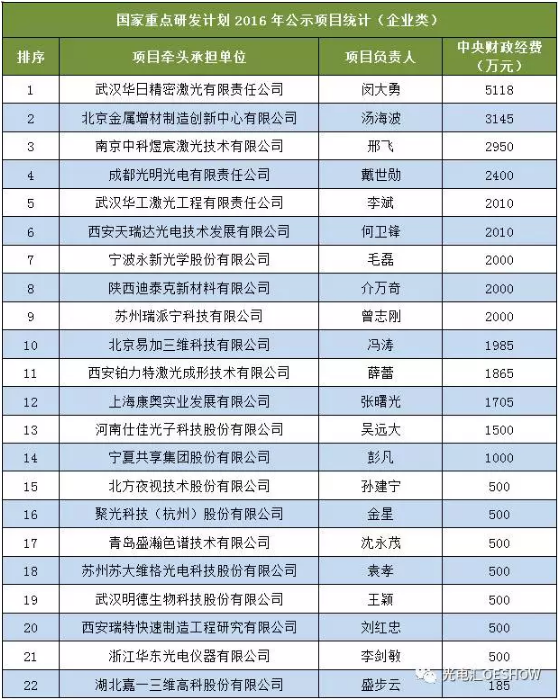 其中光學類單項經(jīng)費最高的是中國科學院物理研究所呂力承擔的“拓撲量子材料、物性與器件研究”項目,中央財政經(jīng)費達到9676萬元;企業(yè)承擔項目中單項經(jīng)費最高的是武漢華日精密激光有限責任公司閔大勇承擔的“工業(yè)級皮秒/飛秒激光器關(guān)鍵技術(shù)研究及產(chǎn)業(yè)化”項目,中央財政經(jīng)費達到5118萬元。中國科學技術(shù)大學此次獲得審批項目涉及光學類的有7個,總經(jīng)費達2.2億,近23億經(jīng)費的十分之一,可謂獨占鰲頭。