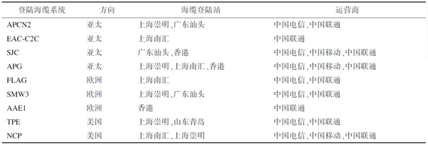 表1 在我國登陸的海纜和登陸站