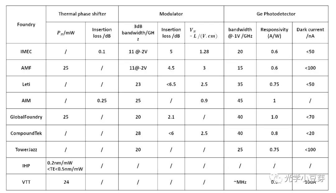 1)目前主流的硅光芯片采用220nm的SOI, 只有Leti采用310nm厚的Si, VTT采用3um的厚硅工藝。