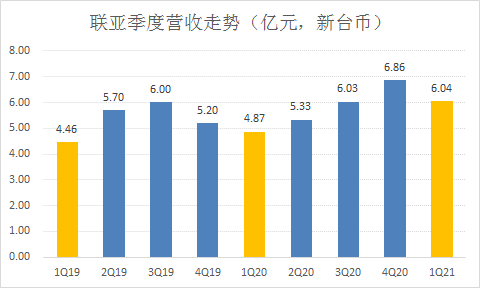 聯(lián)亞今年第一季合并營收6.04億元(新臺幣,下同),同比增長24.02%。4月合并營收2.01億元,相比上個(gè)月的2.23億元下滑9.87%,跟去年同期的1.7億元相比,增長18.24%。