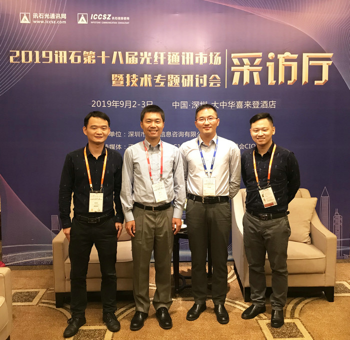 光通信市場(chǎng)亞太業(yè)務(wù)開發(fā)經(jīng)理莫?jiǎng)?/span>(左二)、通訊市場(chǎng)大中華業(yè)務(wù)經(jīng)理嚴(yán)法銀(左三)
