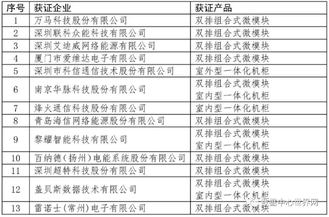 中國信通院泰爾認(rèn)證中心有限公司頒發(fā)第二批微模塊數(shù)據(jù)中心產(chǎn)品認(rèn)證證書,獲證企業(yè)共13家,萬馬科技、科信技術(shù)、烽火通信等多家上市公司在列。