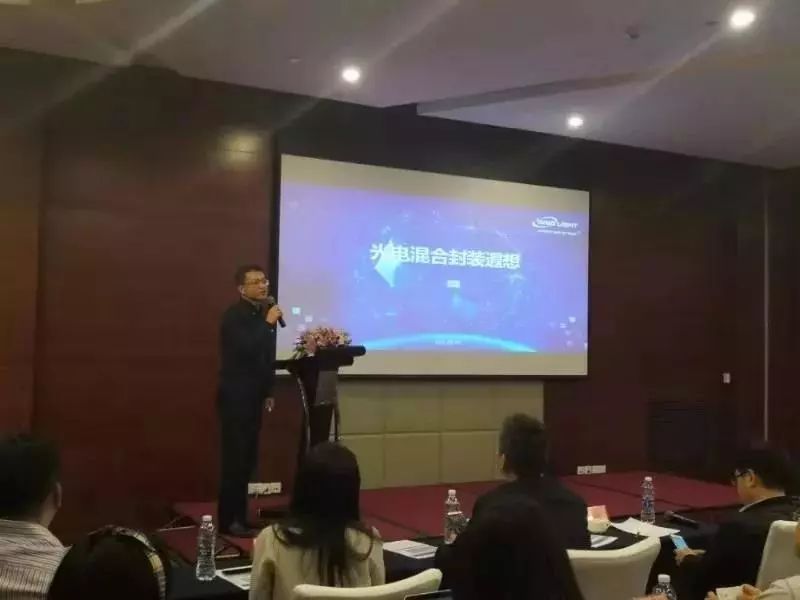 中際旭創(chuàng)副總經(jīng)理丁海博士分享了《光電混合封裝遐想》,丁總表示:隨著流量的高速增長,帶來了高帶寬的需求,進(jìn)而驅(qū)動光模塊技術(shù)發(fā)展和速率的不斷提升,隨著技術(shù)的發(fā)展,未來電混合封裝(Co-Packaging)將是下一代技術(shù)的研究方向。旭創(chuàng)科技預(yù)計明年將演示800G光模塊,未來也將積極關(guān)注光電混合封裝技術(shù)的發(fā)展。