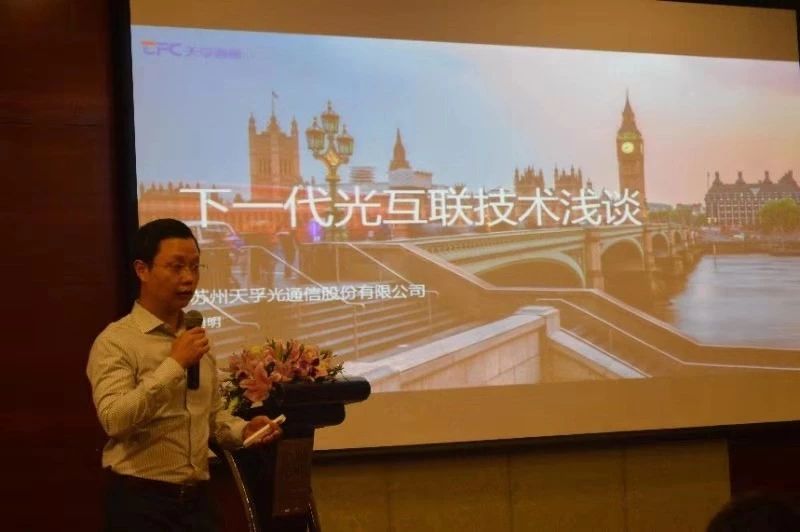 天孚通信肖總在《下一代數(shù)據(jù)中心光互聯(lián)技術(shù)淺談》報告中,他首先在報告中展示了5G時代的光模塊的具體需求(前傳、中傳和回傳),同時給大家介紹了COBO & Co-Packaging混合集成、硅光(SiP)封裝技術(shù)、DWDM Tunable 可調(diào)諧激光技術(shù)和Plasmonics 表面等離子體光子學(xué)技術(shù)等下一代光互聯(lián)技術(shù)。最后介紹天孚時表示:天孚通信是一家光通信領(lǐng)域先進(jìn)光電子制造服務(wù)提供商,推出有服務(wù)于光模塊廠商的七大高端無源器件整體解決方案,期待與光模塊廠商一起抓住5G和數(shù)據(jù)中心發(fā)展機(jī)遇,與大家攜手共贏,推動光通信行業(yè)發(fā)展。