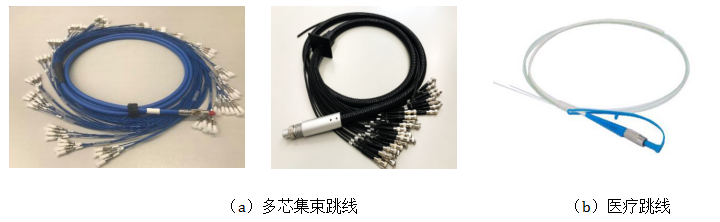 醫(yī)用鈥光纖跳線因其特殊的工作波長,廣泛應用于臨床醫(yī)療領域。鈥激光工作波長2140nm,在水的吸收范圍內,水吸收大量的光能量,可減少對周圍組織的損傷,使得術后反應輕、傷口愈合快。鈥光纖跳線可應用于泌尿外科、五官科、皮膚科、婦科手術等等。長飛公司的鈥光纖跳線產(chǎn)品已通過生物兼容性試驗,且適用波長范圍寬(532nm~2200nm),如圖4(b)所示,采用純硅芯和雙包層設計,提高了780nm~2140nm的激光傳輸效率,此外還可提供不同芯徑光纖滿足各種需求。