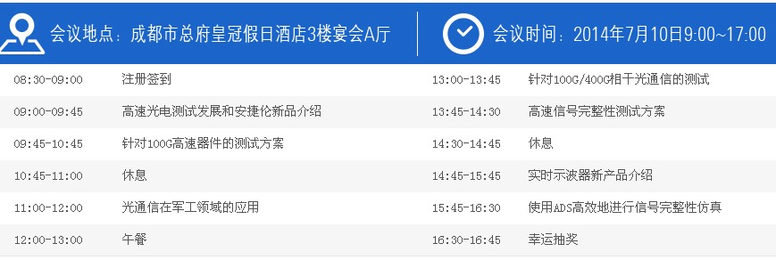 ICCSZ訊 安捷倫高速光電測(cè)量峰會(huì)將于2014年7月10日9:00~17:00在成都市總府皇冠假日酒店3樓宴會(huì)A廳舉辦。屆時(shí)將有光通信在軍工領(lǐng)域的應(yīng)用、使用ADS高效地進(jìn)行信號(hào)完整性仿真、針對(duì)100G高速器件的測(cè)試方案、高速信號(hào)完整性測(cè)試方案、針對(duì)100G/400G相干光通信的測(cè)試、實(shí)時(shí)示波器新產(chǎn)品介紹等等主題報(bào)告。歡迎報(bào)名參加,入口>>