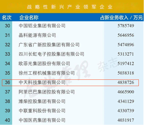 ICC訊 近期,中國企業(yè)聯(lián)合會(huì)、中國企業(yè)家協(xié)會(huì)發(fā)布《2020中國戰(zhàn)略性新興產(chǎn)業(yè)領(lǐng)軍企業(yè)100強(qiáng)》榜單,中天科技憑借出色的戰(zhàn)新產(chǎn)業(yè)創(chuàng)新成績,榮登第36位。