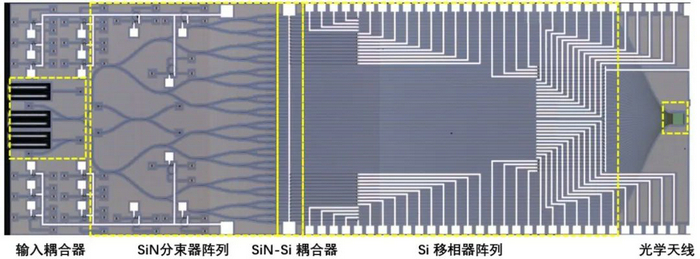 圖1. SiN-Si雙層OPA芯片顯微鏡照片