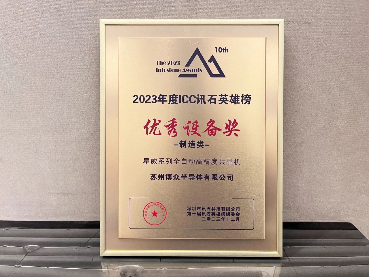 作為半導(dǎo)體先進(jìn)封裝自動(dòng)化裝備提供商,博眾半導(dǎo)體受邀與會(huì),并憑借“星威系列EH9721全自動(dòng)高精度共晶機(jī)”產(chǎn)品,從一眾實(shí)力強(qiáng)勁的企業(yè)中脫穎而出,獲評2023年度ICC訊石英雄榜優(yōu)秀設(shè)備獎(jiǎng)。