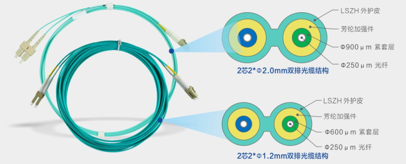 圖1 2.0mm*2光纜與1.2mm*2光纜對比