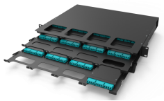 二、與雙工LC光纖光纜配套使用的配線架,由原來的標(biāo)準(zhǔn)19寸1U機(jī)架的96芯現(xiàn)升級(jí)為144芯。原有標(biāo)準(zhǔn)19寸1U的配線架采用4個(gè)24芯的MPO/MTP轉(zhuǎn)LC模塊盒組成,而現(xiàn)在144芯配線架由12個(gè)12芯MPO/MTP轉(zhuǎn)LC模塊盒組成?,F(xiàn)有的1U機(jī)架144芯的配線架與原1U機(jī)架96芯相比,在相同的空間內(nèi)的容量增加50%,大大的提高了機(jī)柜利用率。且新型的結(jié)構(gòu)采用抽屜式的結(jié)構(gòu),方便施工人員安裝以及管理。