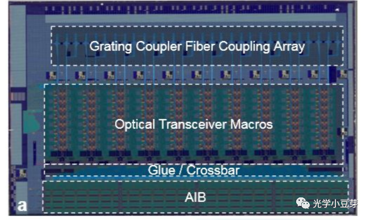 AIB區(qū)域作為電信號的IO接口,實現(xiàn)芯片內(nèi)的電信號與外部ASIC芯片之間進行通信。AIB標準由Intel提出,主要目的是為了實現(xiàn)多個die之間信號的通信。