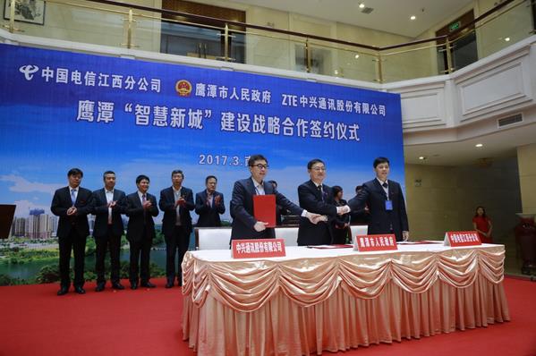 Iccsz訊 上周五,鷹潭市政府、江西電信、中興通訊三方在南昌市簽署“智慧新城”物聯(lián)網(wǎng)建設(shè)戰(zhàn)略合作協(xié)議。根據(jù)協(xié)議,三方將以窄帶物聯(lián)網(wǎng)發(fā)展為技術(shù)主線,以構(gòu)建特色物聯(lián)網(wǎng)產(chǎn)業(yè)、打造智慧示范應(yīng)用為核心,以物聯(lián)網(wǎng)專(zhuān)項(xiàng)扶持政策為保障,將鷹潭打造成為國(guó)內(nèi)極具特色的物聯(lián)網(wǎng)產(chǎn)業(yè)集聚區(qū),最終建成“智慧互聯(lián)、普惠共贏”的鷹潭智慧新城。