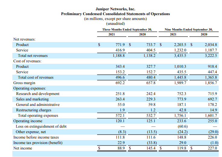 ICC訊(編譯:Vicki)安全,人工智能驅(qū)動(dòng)網(wǎng)絡(luò)的領(lǐng)導(dǎo)者Juniper網(wǎng)絡(luò)(NYSE:JNPR)報(bào)告了截至2021年9月30日的三季度的初步財(cái)務(wù)業(yè)績(jī),并提供了截至2021年12月31日的四季度的預(yù)測(cè)。