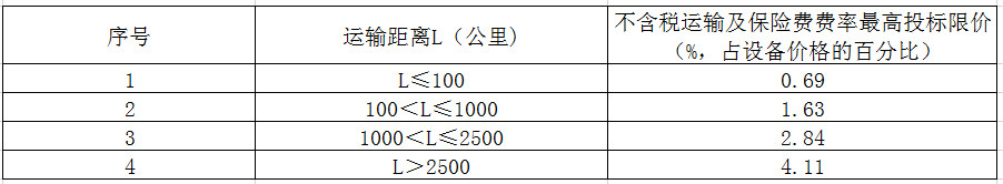 運(yùn)輸及保險(xiǎn)費(fèi)費(fèi)率的最高投標(biāo)限價(jià)如下: