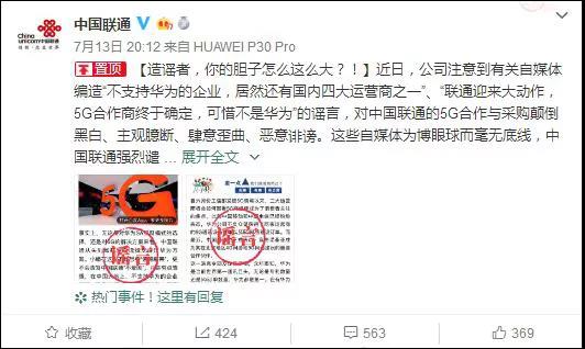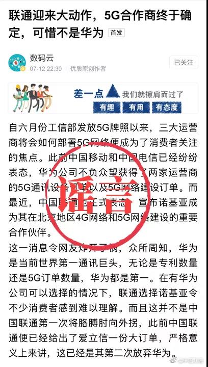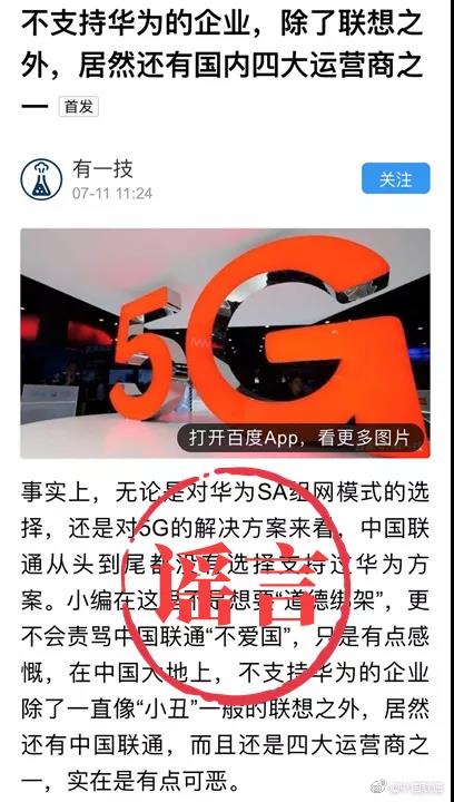 文章標(biāo)題:聯(lián)通辟謠不支持華為:造謠者,你的膽子咋這么大