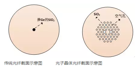 傳統(tǒng)光纖截面示意圖與光子晶體光纖截面示意圖