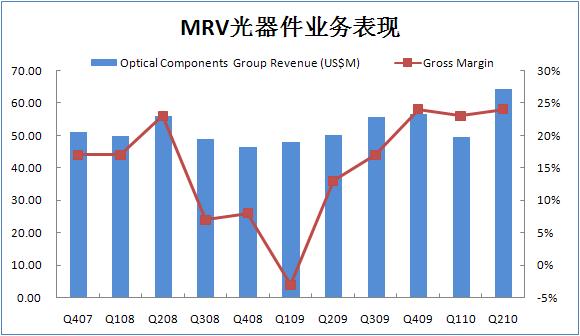 MRV光器件業(yè)務(wù)部門毛利率一度下跌為負數(shù),之后公司努力改善營運削減成本,到今年二季度,該部門毛利率已經(jīng)恢復(fù)至健康水平。