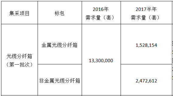 Iccsz訊 5月2日?qǐng)?bào)告,中國(guó)移動(dòng)4月29日公布2017年度光纜分纖箱第一批次集采結(jié)果,第一批次光纜分纖箱分為2個(gè)標(biāo)段,每個(gè)標(biāo)段中標(biāo)企業(yè)分別有12家,其中訊石會(huì)員中天寬帶、亨通光電、上海匯玨、特發(fā)信息和烽火通信成功上榜。