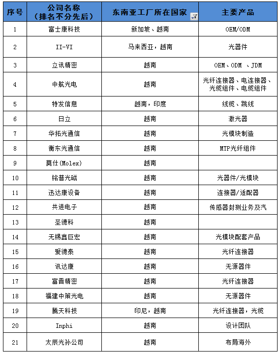 會(huì)員單位如需要ICC《光通信企業(yè)東南亞建廠》統(tǒng)計(jì)表,歡迎致電 0755-82960080 或關(guān)注公眾號(hào)“訊石光通訊”留言獲取。