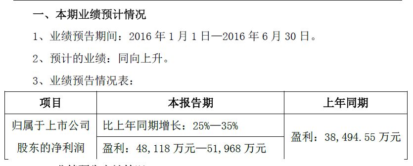 本業(yè)績預(yù)告數(shù)據(jù)是公司財務(wù)部門初步測算的結(jié)果,未經(jīng)審計機(jī)構(gòu)審計。具體財務(wù)數(shù)據(jù)將在公司2016年半年度報告中詳細(xì)披露。