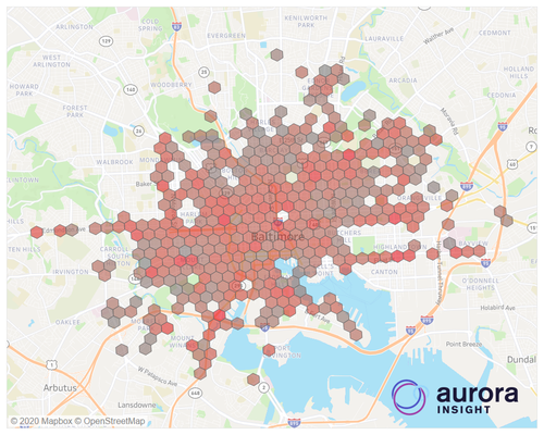Aurora表示,其傳感器在Baltimore的37個Verizon mmWave站點上測量了44平方公里的Verizon 5G mmWave覆蓋范圍,總共利用了111根天線(每個站點大約有3個天線)。
